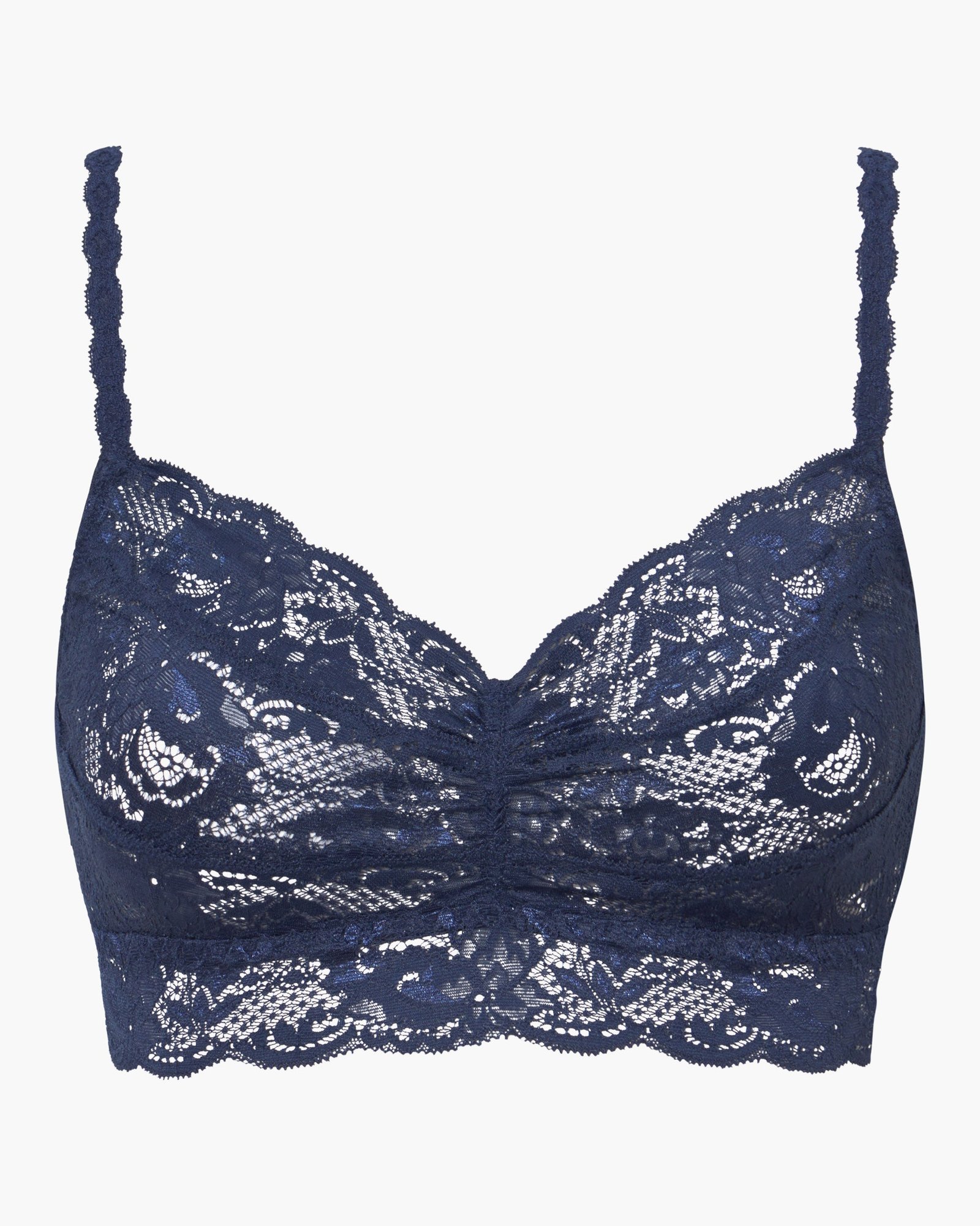 • Soft, stretch scalloped lace with sweetheart front.